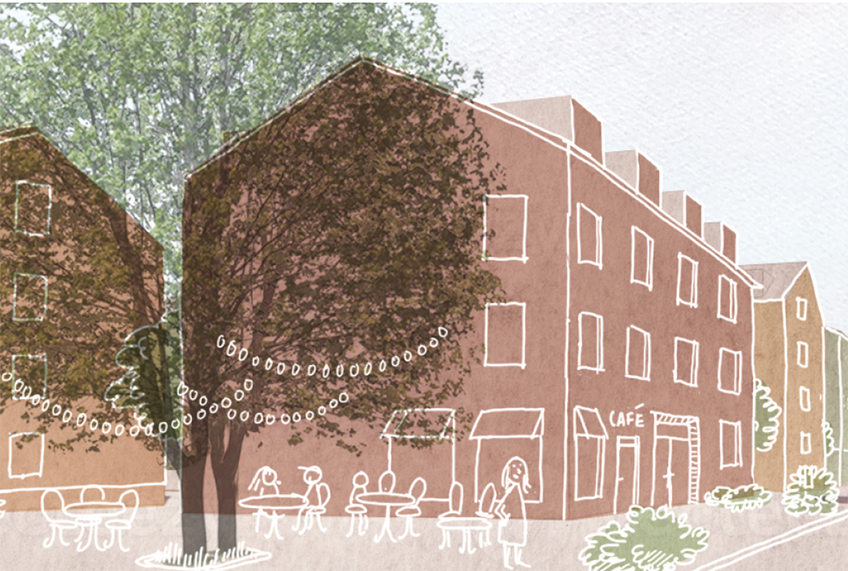 Den tillfälliga lokalen omfattar tre våningsplan som bland annat ska rymma publik biblioteksverksamhet, Kontaktcenters besöksreception, kontor, mötesrum och personalutrymmen.